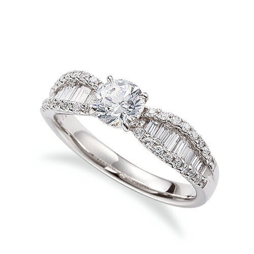 指輪 18金 ホワイトゴールド 天然石 バゲットメレのサイド一文字リング 主石の直径約5.2mm 四本爪留め|K18WG 18k 貴金属 ジュエリー レディース メンズ