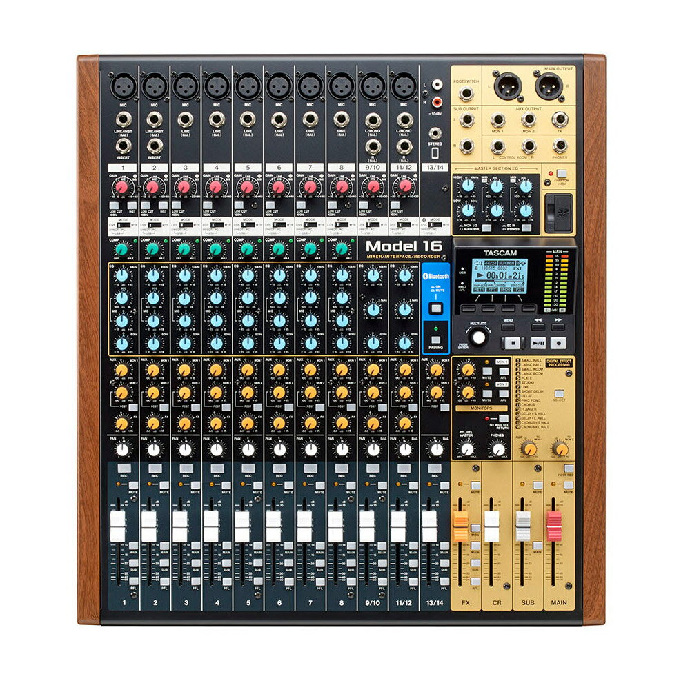 マルチトラックレコーダー、オーディオインターフェースを統合した多機能アナログミキサー【特徴】『Model 16』は、TASCAMアナログミキサーのフラグシップであるModel 24のパワフルなレコーディングエンジンとミキシングの機能性を踏襲。