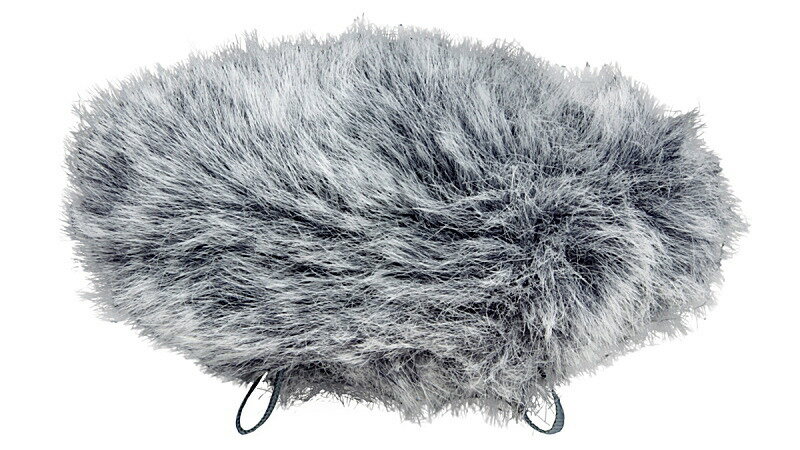 ウィンドノイズを低減するファーウィンドスクリーン 屋外の撮影では、少しでも風があるとマイクに「吹かれ」と呼ばれるノイズが入ってしまいます。